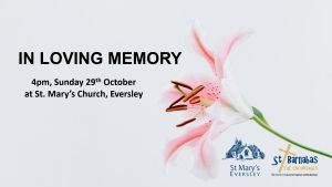 We are moving into a period of the year when we do a lot of remembering. Before we get to Remembrance Sunday itself, we will be holding a short reflective service at St. Mary's Eversley, at 4pm on Sunday 29th October at which the names of loved ones who have died (recently or at any time in the past) can be remembered.